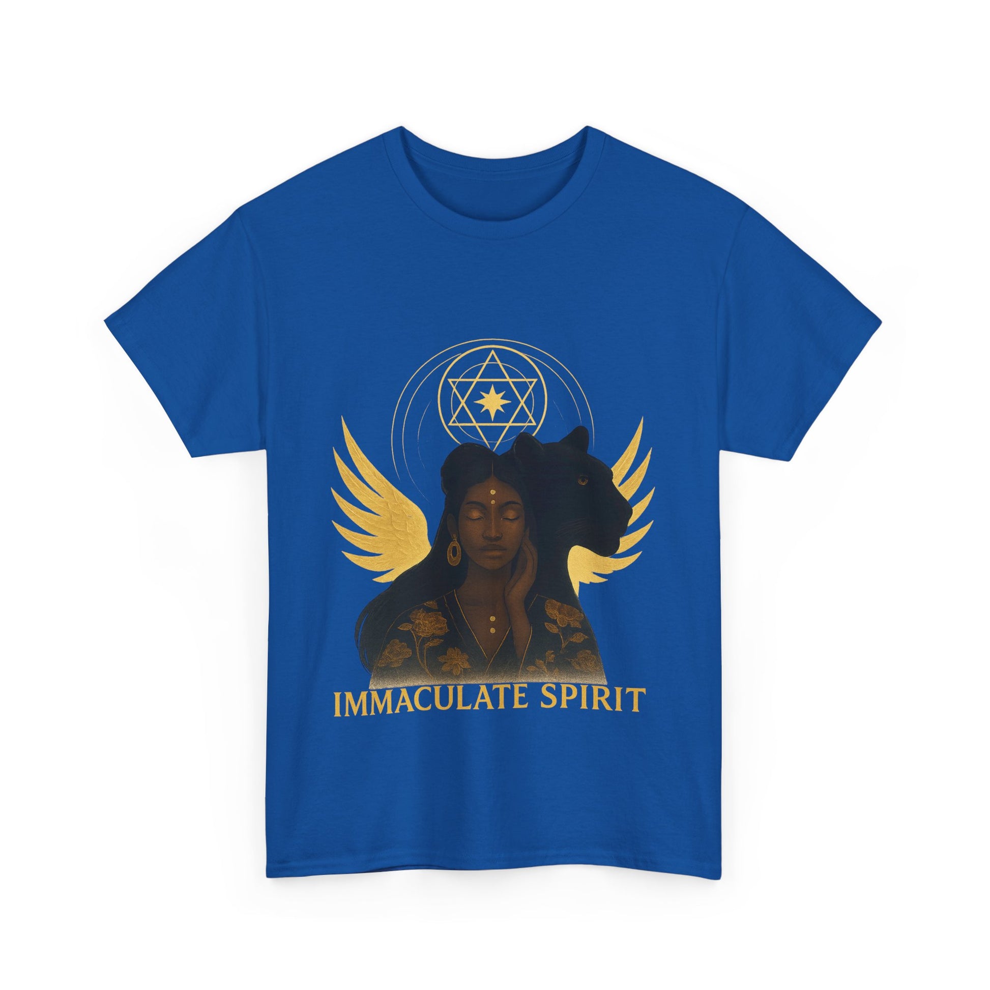 The Divine Authority Tee is a royal ode to the sacred feminine and the lioness within. Draped in celestial gold and backed by sacred geometry, this design honors divine intuition, spiritual power, and unapologetic presence.